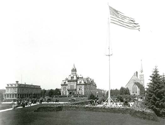 Finally the signal strikes. All are in a line. Major J. B. Thomas led the column as the grand officer of the ceremony, then a military escort of the G.A.R., the guests invited, the engine and hose company, and the inmates not belonging to the G.A.R. closed up the rear.