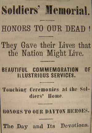 "In accordance with the custom inaugurated last year by a happy order from the Commander of the Grand Army of the Republic, Saturday was devoted to the ceremony of carrying a floral tribute to the graves of our fallen brave. As the only day of the year set apart to the memory of those who sacrificed their lives in subduing the Great Rebellion, it is a pleasant duty to Chronicle so general and imposing an observance as was witnessed in this city and at the National Asylum for disabled veterans near by. Everything passed off, as a general thing in a most fitting manner, most gratifying to the friends of those whose loss the whole community has mourned. Let us hope that the consecration of a day sacredly devoted to keeping alive in our hearts a love and gratitude for those who sacrificed their lives to preserve our liberty and National unity, may not only be generally observed but take a permanent place among the national festivals.