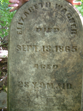 - Elizabeth Wagner, d. 13 Sep 1865, a. 28y 9m 1d