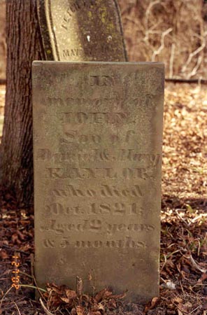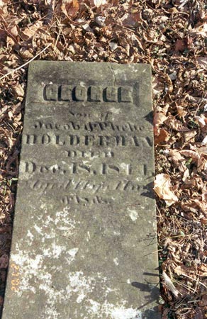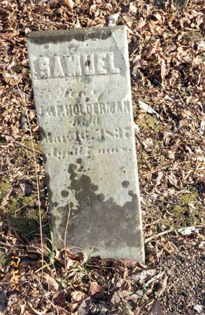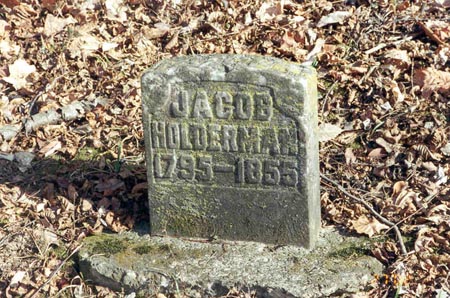 The Kaylor (Holderman) Cemetery was a family cemetery, now located in the Possum Creek Reserve off of Frytown Road, through the entrance to the Reserve, behind the fishing lakes, East on the service road which used to be an extension of Caylor Road. Go North on a bridle trail along the East side of the lakes, to about 350 feet North of the service road. Take the footpath from the bridle trail to the East.
