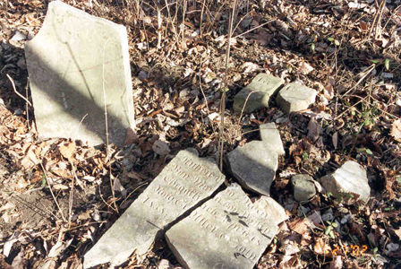 View of the broken stones that was once Leslie Cemetery.