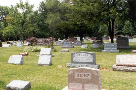 Click picture to view enlargement. View across the newer section of the cemetery.
