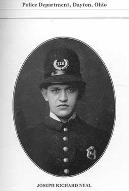 Joseph Richard Neal first saw the light of day in the quiet old "Quaker City," Richmond, Ind., on March 16, 1886. While he was a lad his parents brought him to Dayton, where he entered the public schools. Later he attended St. Mary's School, and he was well equipped to face the world when he started out to make his own living. He learned the trade of screw maker and followed it until his appointment to the force on May 21, 1909. Mr. Neal is married, his wife's name being Olive. He is a member of the Independent Order of Foresters and is an active worker in the organization.