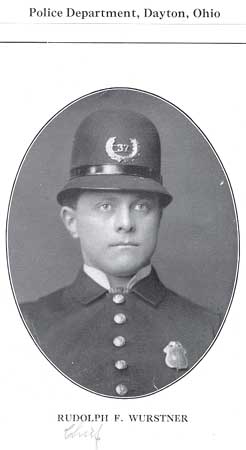 Rudolph F. Wurstner, who is one of the five trustees of the Police Pension Fund, was born in the historic little village of Ft. Jennings, Ohio, on August 5, 1880. He was appointed patrolman on the police force December 1, 1902. When Mr. Wurstner was a mere lad his parents removed to Kearney, Nebraska, where he was educated in the public schools. On reaching manhood he returned to Ohio, locating at Dayton. When appointed on the force he was engaged as a car builder. Mr. Wurstner is identified with the I. O. O. F. Lodge and the M. W. of A. He is married, his wife's name being Carrie. He is deservedly popular among his fellow friends.